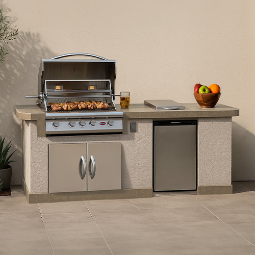 A modest size island will fit perfectly on any nook of the patio. Hide away the propane tank and other dry storage in the centralized 30” double access doors located under the grill. Made to grill with luxury, however, you can enhance your grill by adding LED lighting, umbrella hole, sound system and more… just ask!