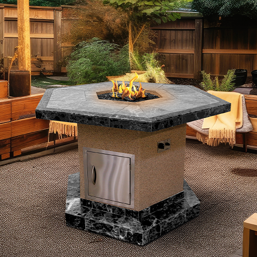 Choose from an array of tile options and your choice of Ameristone Stucco in 5 different colors, 8 stone veneer styles, and accent trim with Porcelain Tile or Natural Stone Tile. Firepits come in square, hexagonal (6-sided) and rectangle shapes to accommodate any backyard preference.